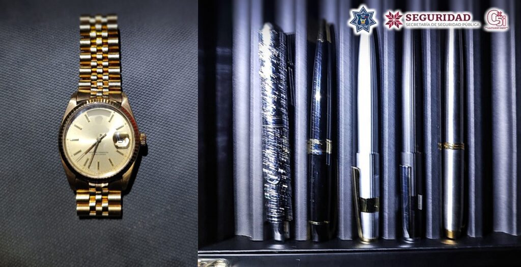 En las acciones fueron asegurados la camioneta, un estuche con lapiceros y un reloj de alta gama, los cuales fueron puestos a disposición del Ministerio Público, al igual que los detenidos.
