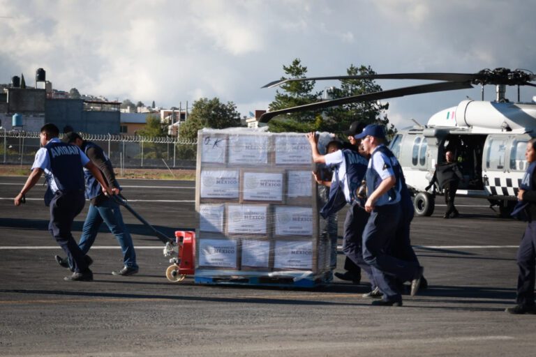 Pachuca de Soto, Hgo.- Personal de la Secretaría de la Marina llegó al estado de Hidalgo para sumarse a la carga, descarga y entrega de despensas para las familias hidalguenses que resultaron afectadas por las lluvias de los últimos días; se prevé que en las próximas horas se trasladen a los municipios de Metztitlán, Huehuetla y Tianguistengo.