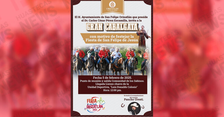 SAN FELIPE ORIZATLÁN.- El Ayuntamiento de San Felipe Orizatlán, bajo la administración del Dr. Carlos César Pérez Escamilla, extiende una cordial invitación a participar en la Gran Cabalgata que se realizará con motivo de la festividad de San Felipe de Jesús. El evento se llevará a cabo el próximo 5 de febrero de 2025.